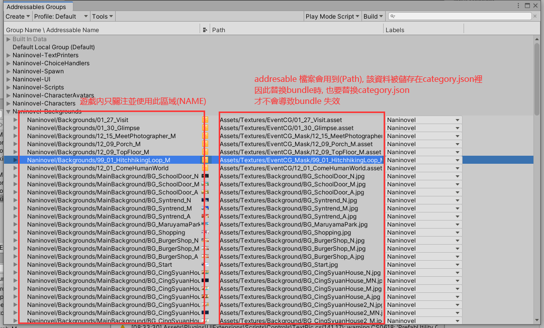 又或者使用是使用 Addressables.LoadAssetsAsync<T>("Addressable Name", null)