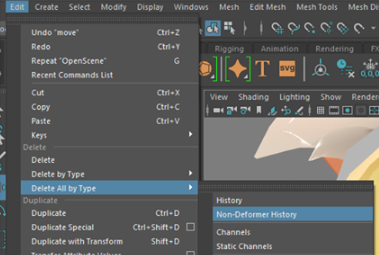 從Maya 導出的fbx, 如果沒有將non-Deform 歷史刪除的話 (Edit > Delete by Type > Non-Deformer History)