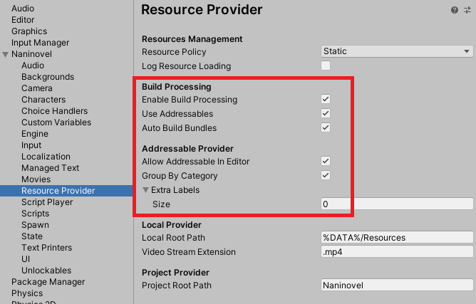Extra Labels => Naninovel 在使用Addressable的行為上, 僅會抓取具有Naninovel標籤的Addressable